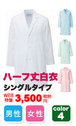 ドクターにも薬局衣にも人気のハーフ丈。後のセンターにベンツを入れ、裾サバキ軽やか。大きな腰ポケットとウエストベルトを配した機能的デザインです。